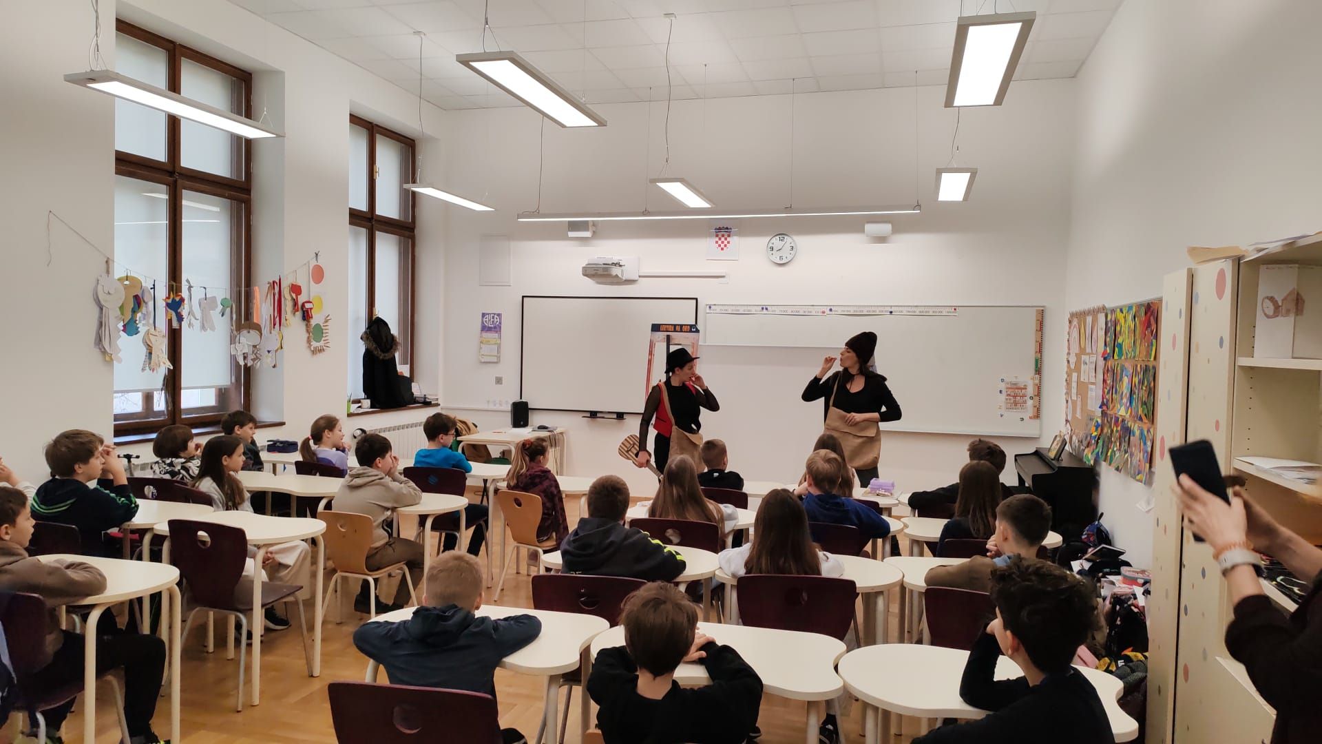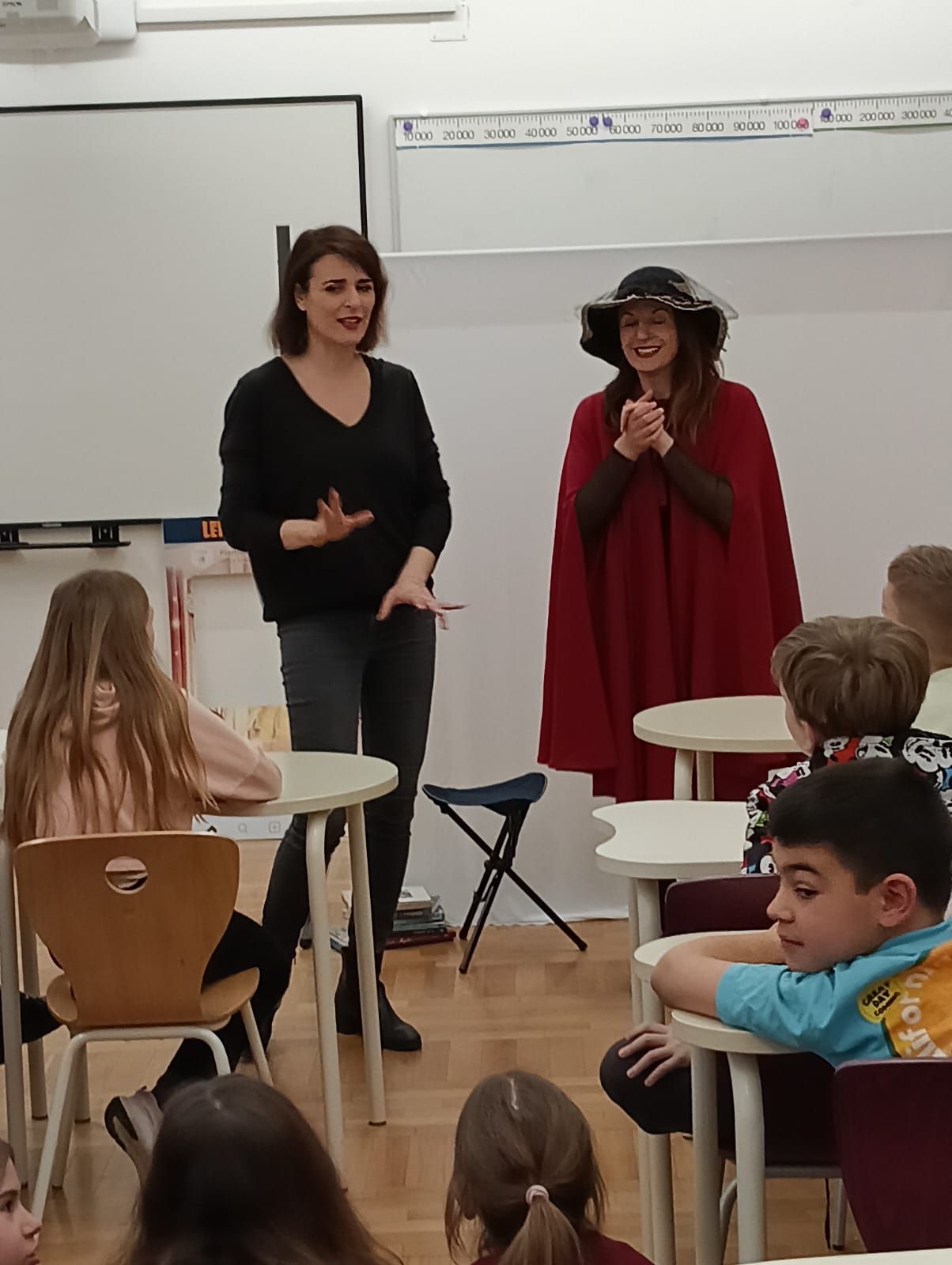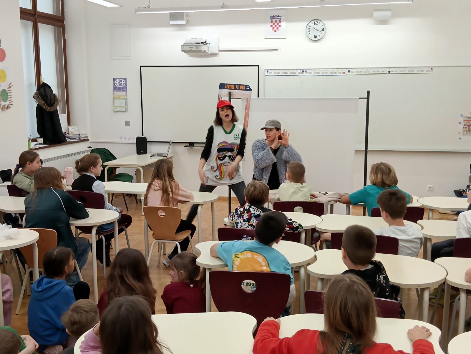 Autorice i izvođačice Ana Katulić i Anita Pukanić očarale su trećaše i četvrtaše (a i učiteljice) svojom energijom i načinom pristupa obradi književnih djela kroz scenski nastup. Uz puno smijeha, zabave i razgovora s publikom obrađivali smo teme prijateljstva i odrastanja te komentirali kakvu snagu priča može imati.